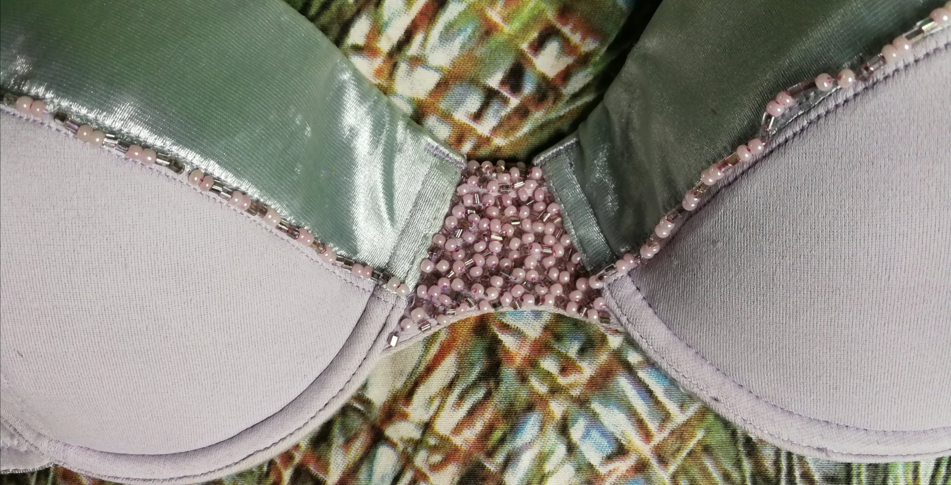 BH mit Handarbeit-Perlenbesatz! Glam Stage Bühnenoutfit Satin True Vintage