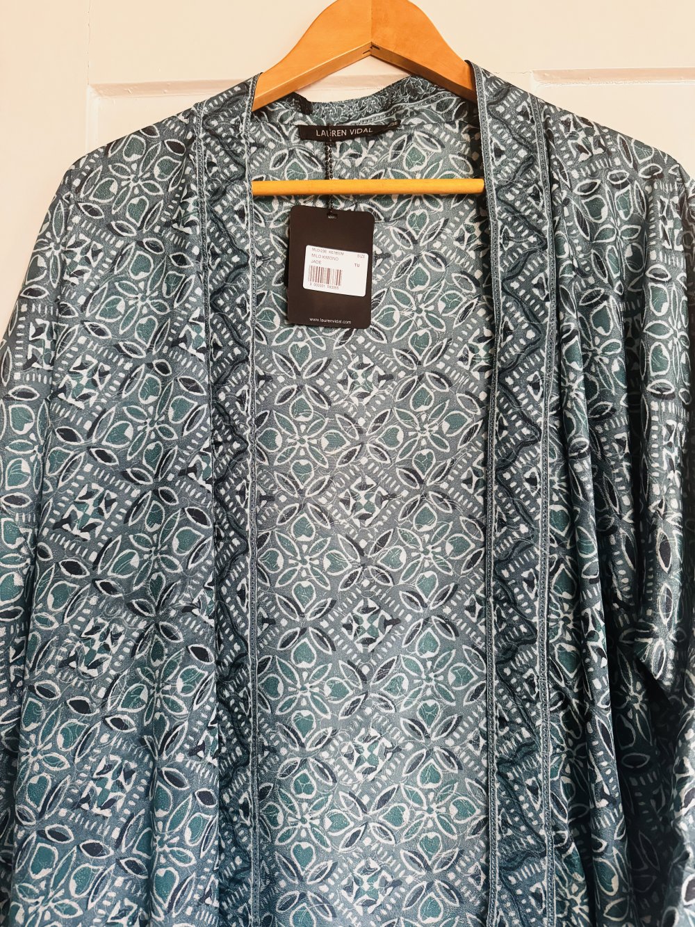 Sehr schönes kimono, offen, leicht, mit Seide. Blau und türkis. Mit Seide, unbenutzt. Ideal für Abend, casual, sehr gut kombinierbar.