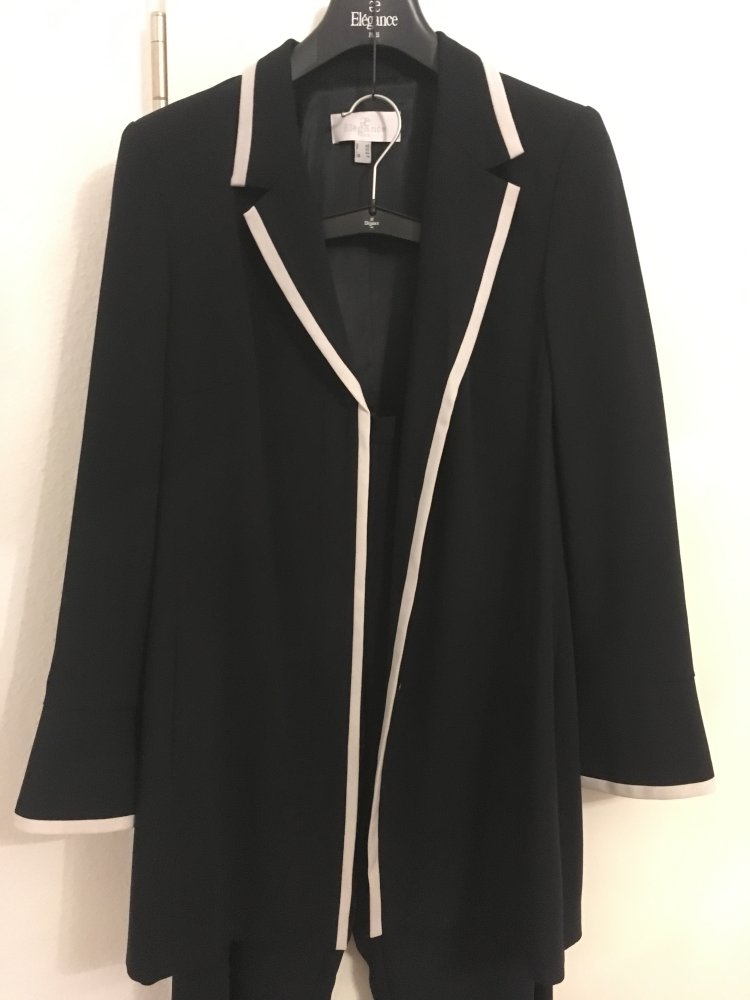 #neu #Elégance #schurwolle #hosenanzug #hose #anzug #blazer #jacke #blau #dunkelblau #weiß #größe40 #L #knöpfe #reißverschluss