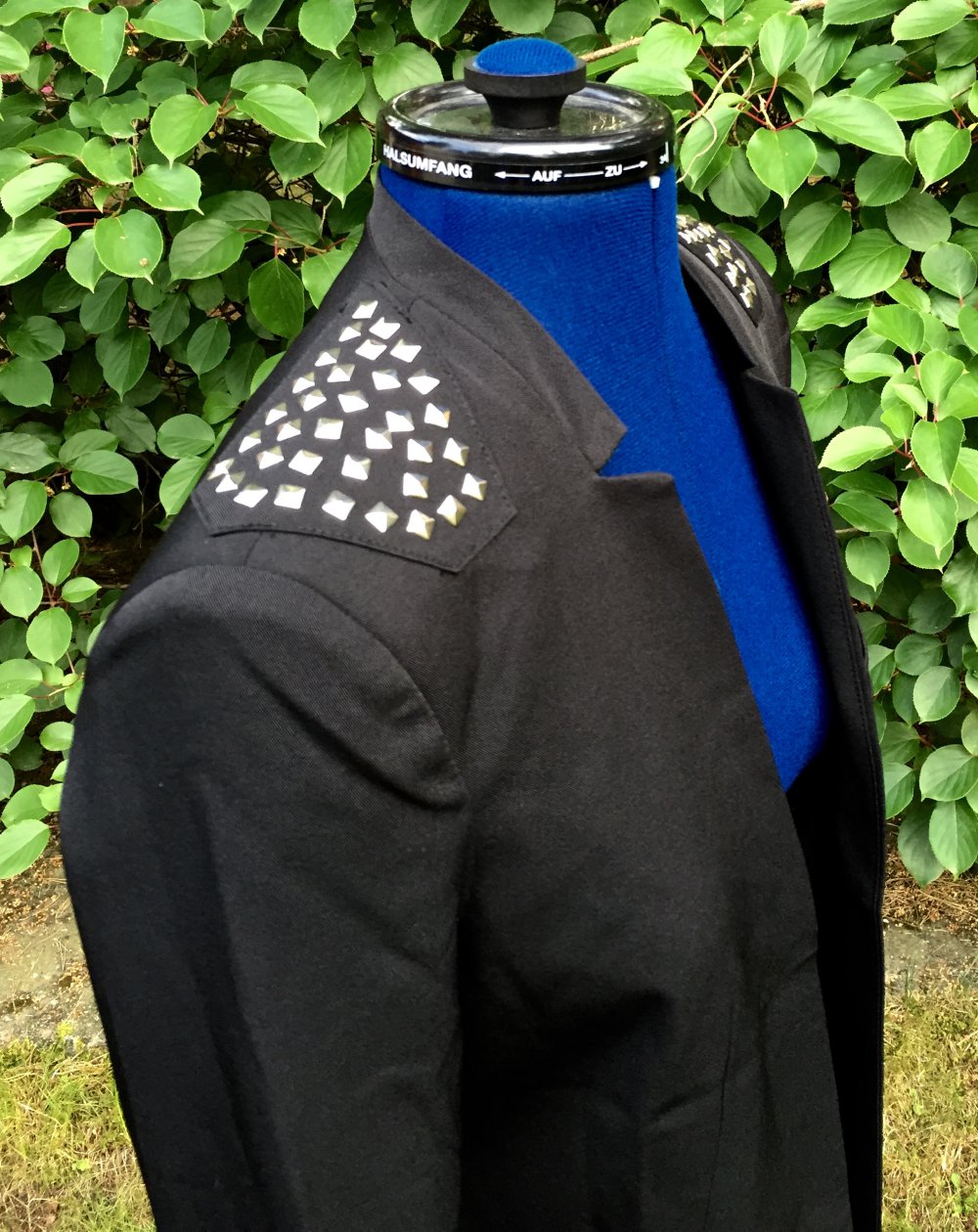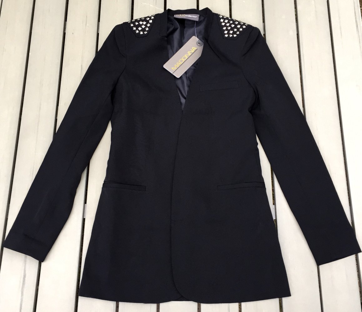 Langer Blazer mit Nietenapplikation an den Schultern von Madonna in Größe XS.
