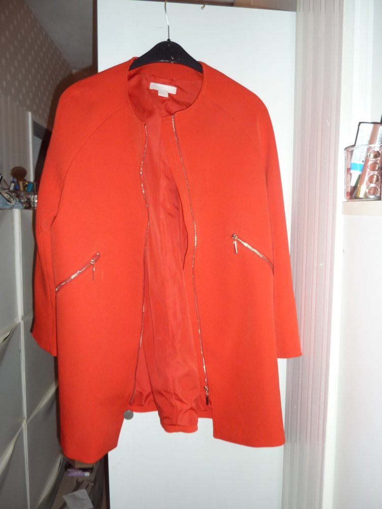 Damen Blazer 46 XL hell rot Longblazer Gehrock Jacke Longjacke Mantel Sommermantel H & M