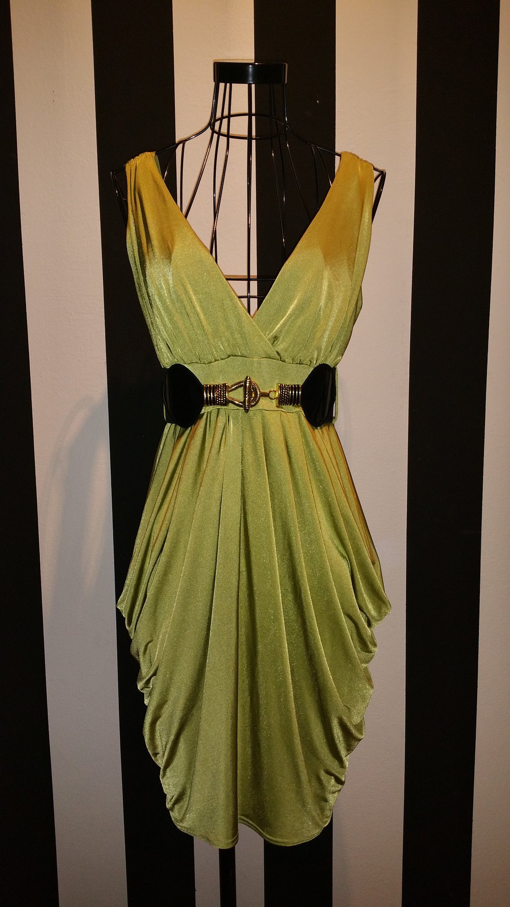 Biete hier ein apfelgrünes Kleid mit seitlichen Raffungen und V-Ausschnitt (vorn, sowie hinten).