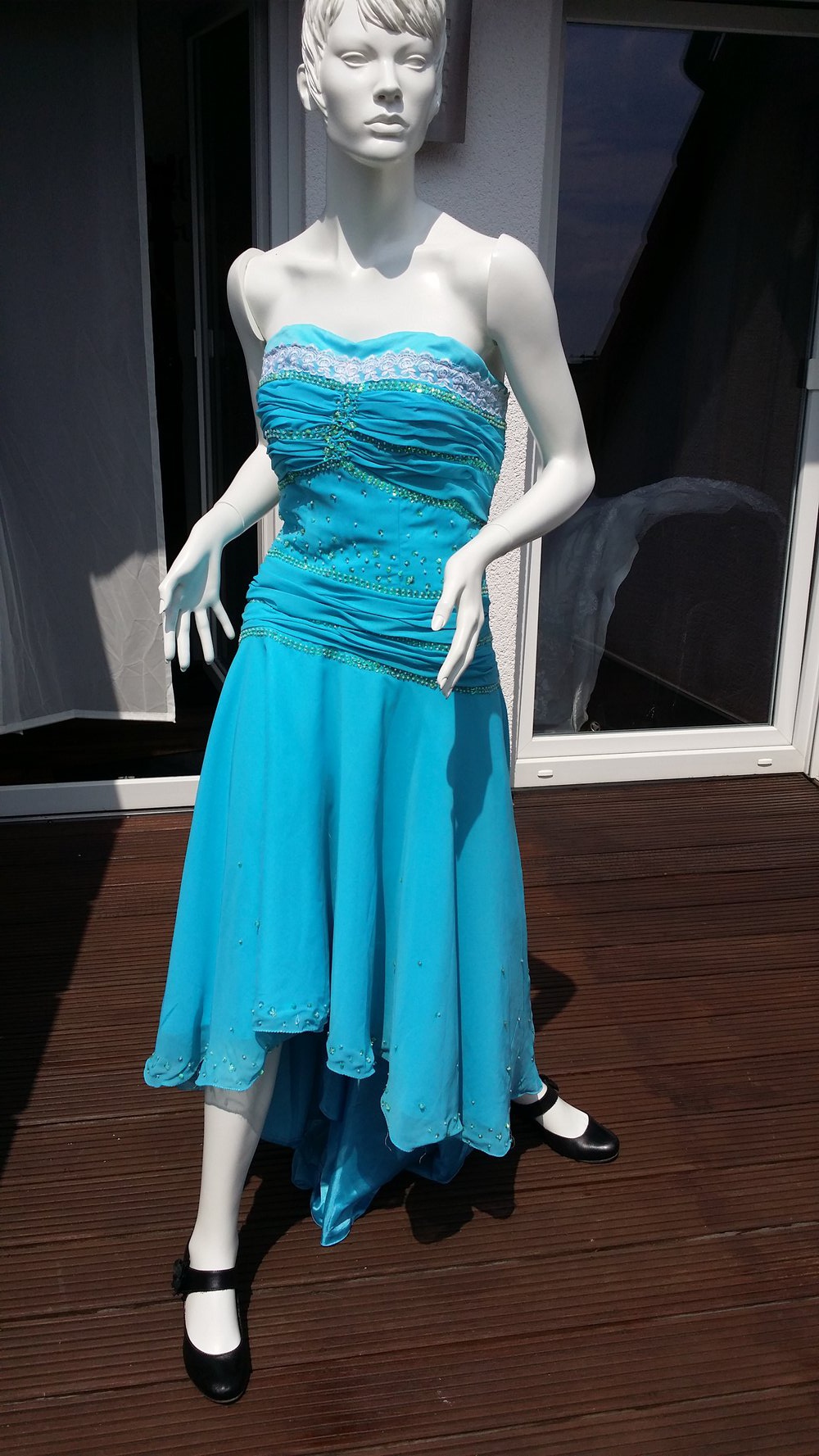 Das Kleid ist vorne 96 cm kurz, hinten 146 cm lang.