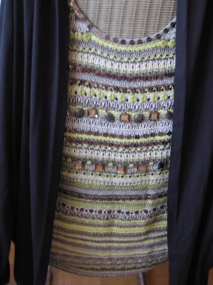 * mit Lurexfäden in verschiedenen Mustern gearbeitet