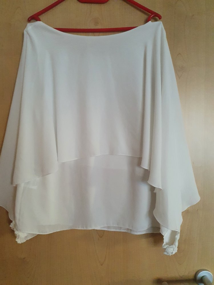 unter Teil gearbeitet wie ein Top und etwas länger, das Oberteil wie ein Cape, dadurch offene Arme mit Bünchen mit Hälfte als Smoke.