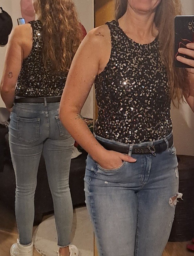 Häkeltop Top mit großen Pailletten Gr. ca. 38-40 schwarz