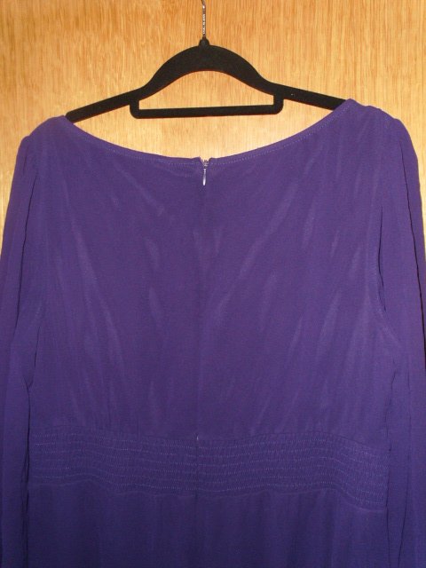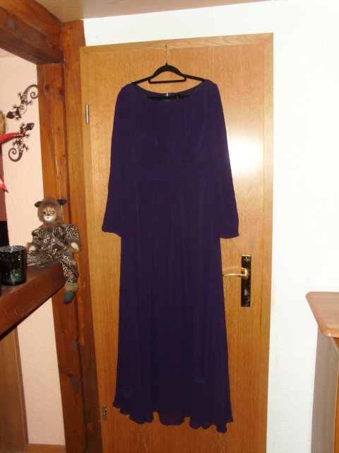 Ich biete hier im Auftrag meiner Freundin ein Abendkleid von Ever Pretty in Größe 40 an. Es ist mit Gr. 3 XL / 46 angegeben, aber es fällt deutlich kleiner aus und wurde in oben genannter Größe getragen. Ich gebe unten noch die Maße an. Das Kleid ist in einem schönen dunklem lila, ich habe einige Fotos überbelichtet damit man die Details besser erkennen kann. Das Kleid ist bodenlang, in einer A-Linie geschnitten und wird auf dem Rücken mit einem Reißverschluss geschlossen. Es ist aus Chiffon, das Kleid ist mit einem blickdichtem Stoff unterlegt, die Ärmel nicht. In der Taille hat es vorn eine Schärperoptik, hinten ist es leicht elastisch gerafft.