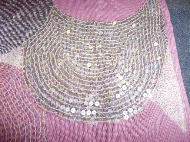 Hier biete ich ein elegantes Feinstrick-Top mit Pailletten, in der Farbe altrosa, grau und weiß, an.