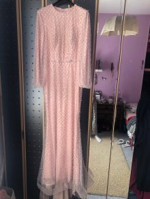 Die Rückseite des Tops ist in uni altrosa ohne Pailletten.
