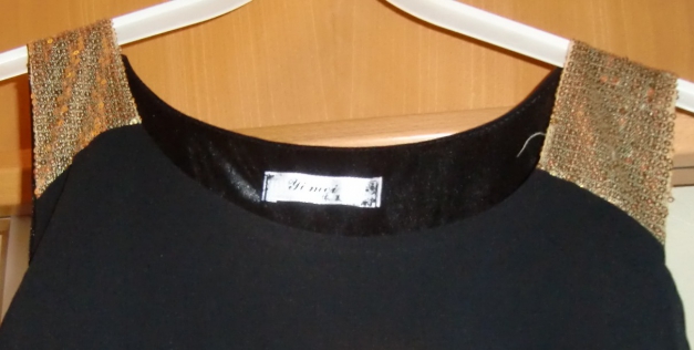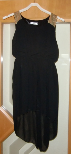 Schwarzes Kleid mit Pailletten an den Schultern