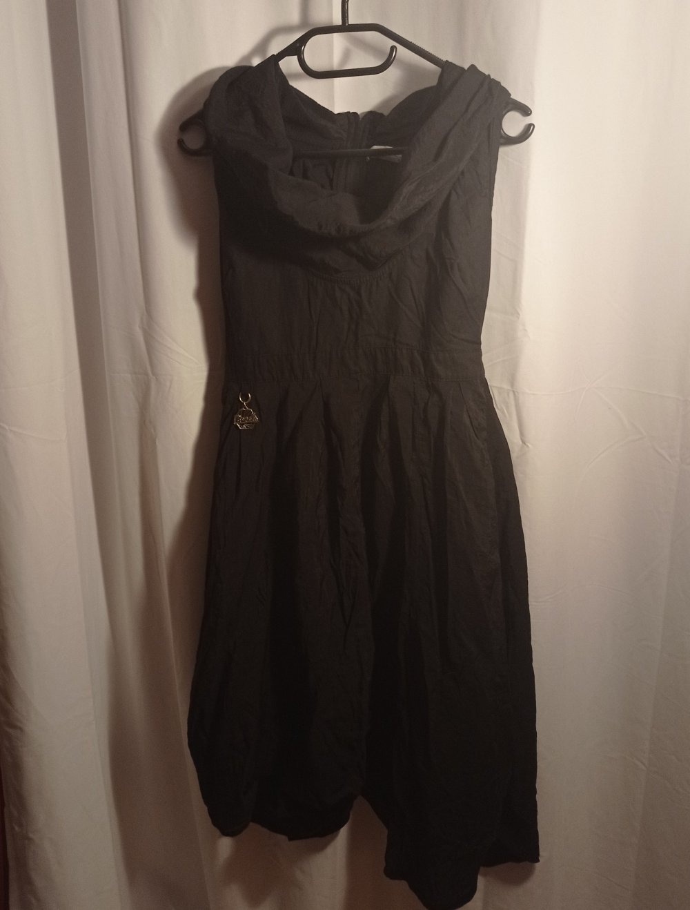 Wunderschönes Kleid in dunkelblau, gr. 36. Es ist aermelos, tailliert und hat einen wunderschönen Kragen. Das Kleid wird hinten mit einem Reißverschluss verschlossen.