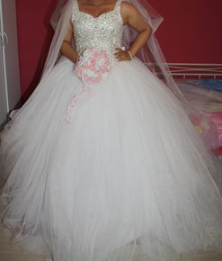 Prinzessinnen Brautkleid von Sima Couture in weiß mit Swarovski Steinen und Perlen. Sehr schöne Qualität & Verarbeitung. Wer den Laden kennt, weiß was ich meine ;)