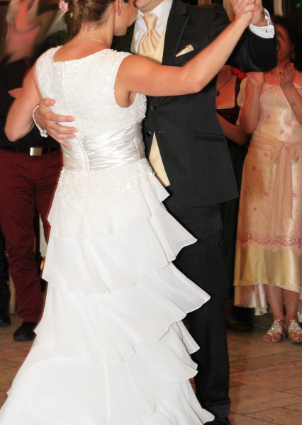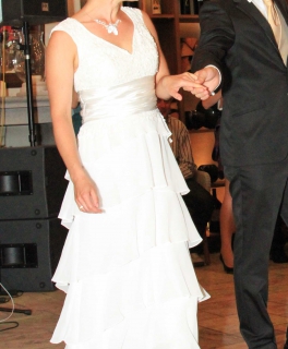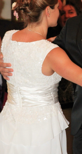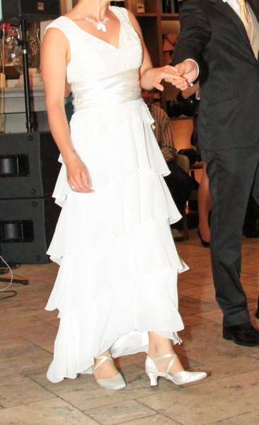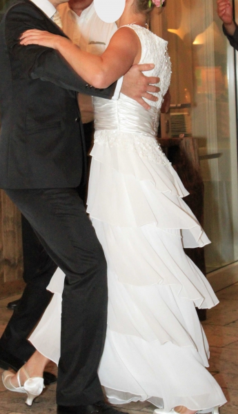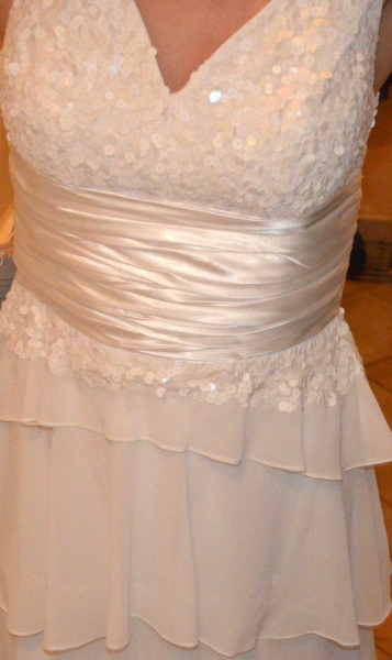 München: Brautkleid Gr. 38 fast neu Volantrock Pailletten