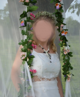 Länge von Schulter bis Boden 133cm + schräg fallende Tüllstücke, sowie Spitze
