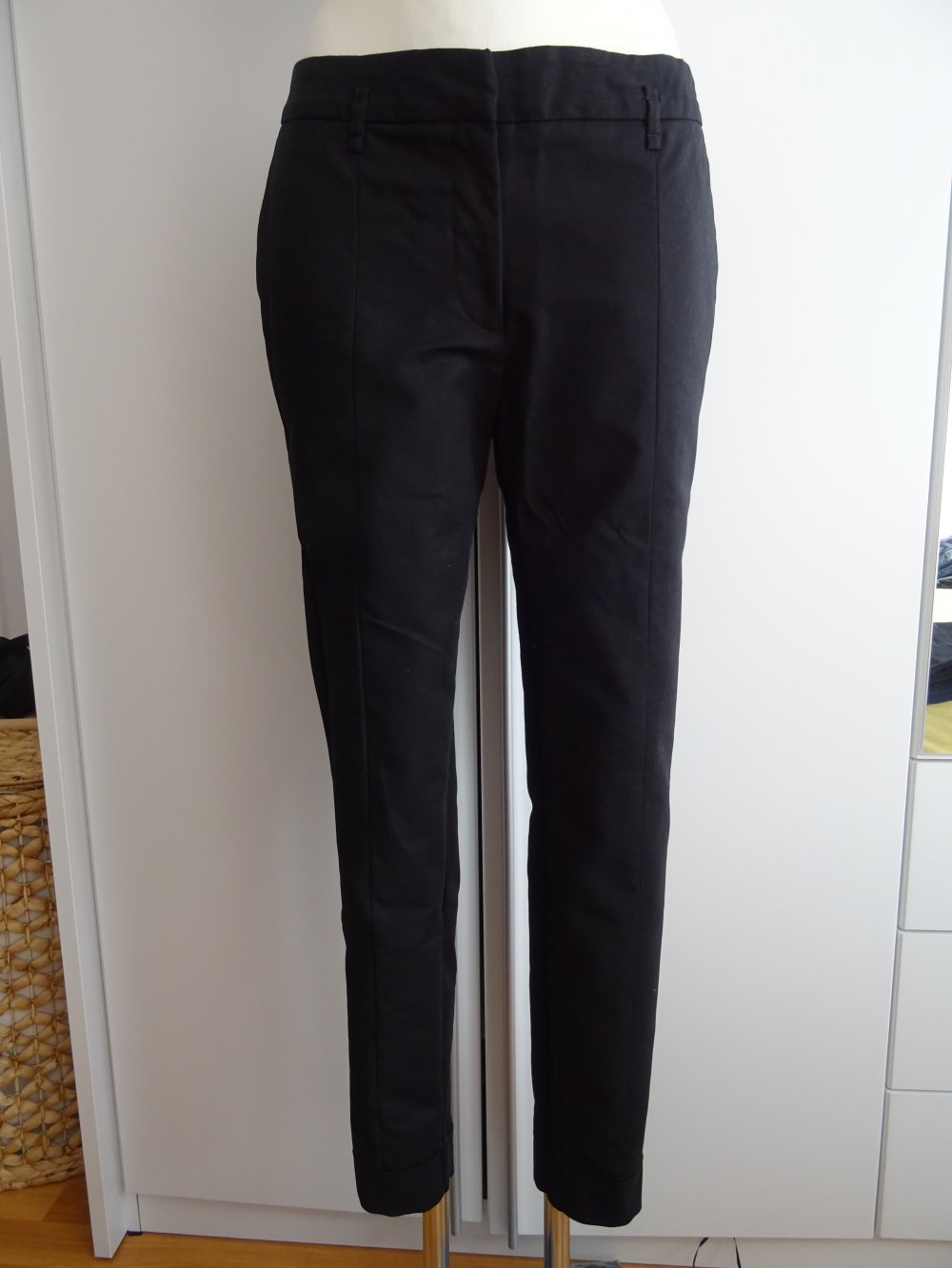 Ungetragene schwarze Stoffhose in 7/8-Länge.