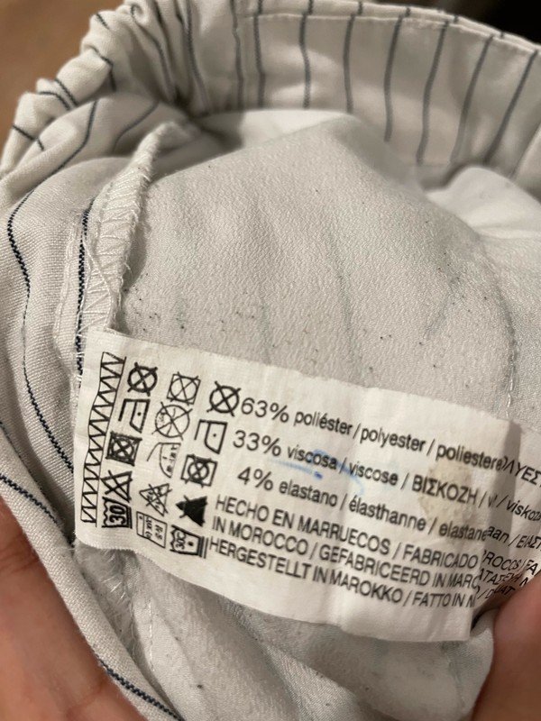 Größe S. Ausgestattet mit elastischem Bund. Mehrmals getragen, es gibt Flecken auf dem unteren Teil der Hose.
