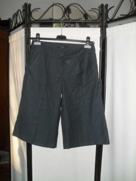 elegante Rock-Alternative, dunkelgrau mit feinen Streifen und Bundfalten, ungefähr in Bermuda-Länge