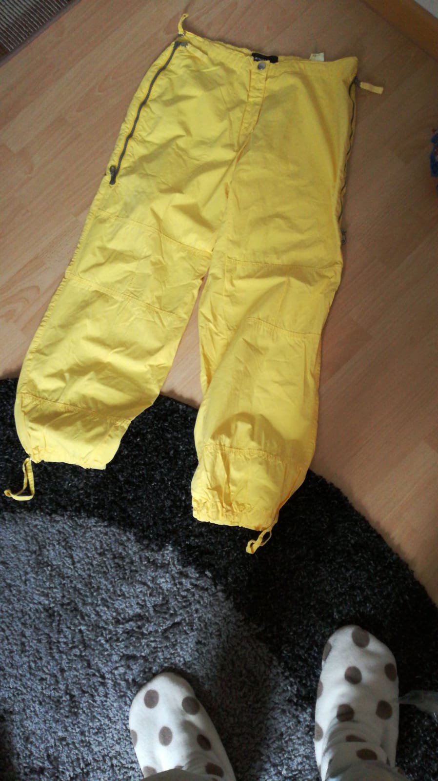 selten getragene sommerliche Hose, in einem irren, leuchtenden Gelb, in der Gr. 40. Die Beinenden sind regulierbar. Hier noch einige Maßangaben: