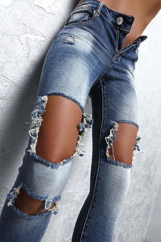 Biete eine nagelneue zerrissene Jeans, ausgeschrieben in der Gr. M.