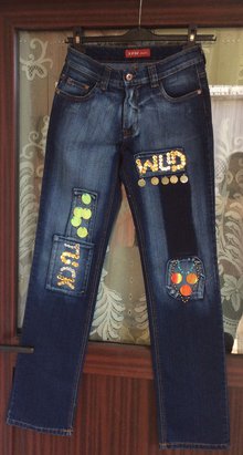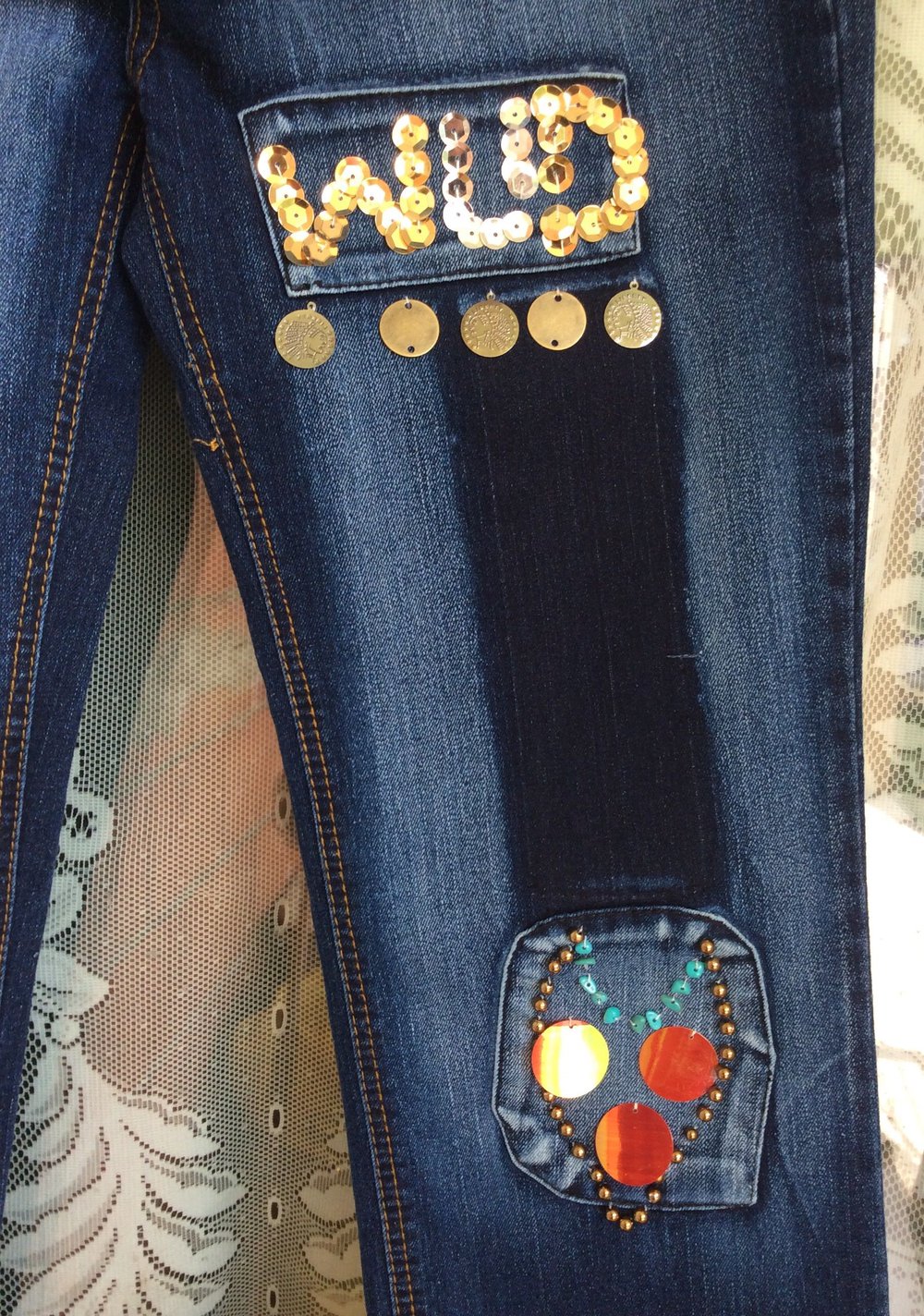 Neue ausgefallene Jeans mit tollen Extras,Pailletten,Steinen,Münzen alles ist aufgenäht ! Im Jeansmaterial ist etwas Stretch,Sodas sie sich der Figur schön anpasst.Denke Handarbeit ? Habe sie als Geschenk bekommen,leider zu eng