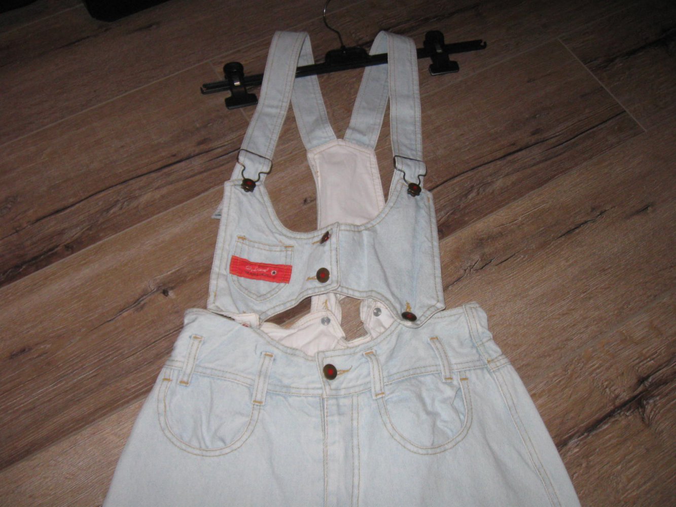 Biete diese absolute Rarität von einer Latzjeans. Der Latz ist abnehmbar, der Schnitt, damals nannte man das den sogenannten Karottenschnitt, d.h. an den Schenkeln weiter, zum Bein Ende enger geschnitten. Hinten am Bund ist sie etwas gerafft. Wer diese Zeit kennt, wird diese Hose lieben. Ich habe die Größe geschätzt. Hier einige Maßangaben: