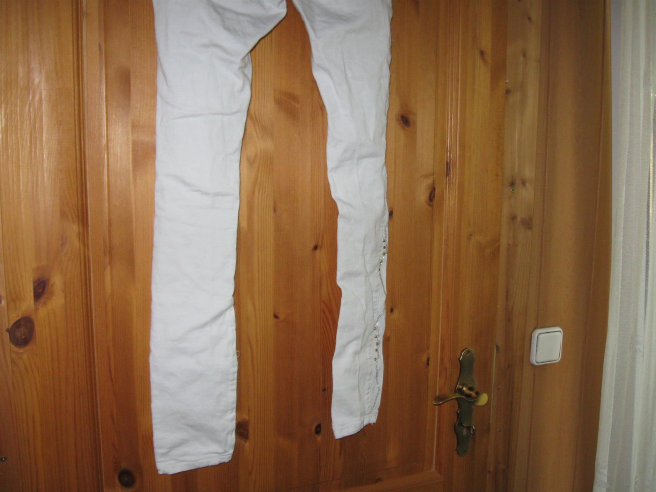 #Hose Jeans/jeansartig, dünnerer Stoff, Gr. 36 bzw. ca. Gr. S, weiß, Amisu
