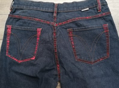 NEU * Sexy * stylisch * modern * Dreiviertel * 7/8 Stiefel * Jeans- Hose "BIBA by ESCADA" Gr. 32- 34/ XS BIBA Gr. 0 * dunkel- blau * rot *