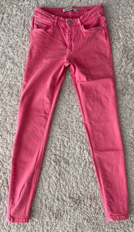 Verkaufe hier eine Tolle, pinke Jeans von Zara. Die Hose ist superskinny, trägt sich jedoch durch ihren hohe Stretchanteil sehr bequem. Leider hat die Jeans an einem der Gürtelschlaufen einen leichten Riss und der Bund darüber hat sich gelöst. Mit etwas Nähgeschick ist dieser Mangel jedoch sehr schnell behoben. Dann ist die Hose wieder wie neu da sie ansonsten kaum getragen wurde. Die Jeans ha die Größe 38, die Bundweite beträgt jedoch ca. 32cm. Daher denke ich sie entspricht eher einer 34-36. Bei weiteren Fragen könnt ihr mir gerne schreiben.