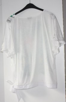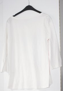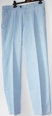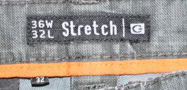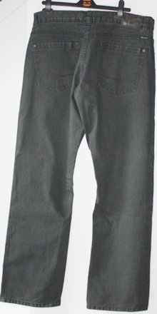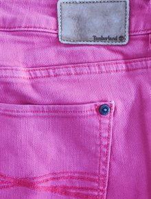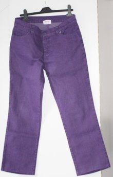 die Jeans hat eine Gesamtlänge von 95 cm; breite Beine; rechts und links jeweils eine Tasche von 11 cm breit; auf der Rückseite jeweils eine Gesäßtasche (Blumenmuster) von 15 cm breite und 13,5 cm Länge; ein Knopf auf der Vorderseite; stammt von der Marke Gina benotti; besteht aus 78% Baumwolle, 20% Polyester u. 2% Elasthan; kann bei 30 C gewaschen werden und auf Stufe 1 gebügelt werden