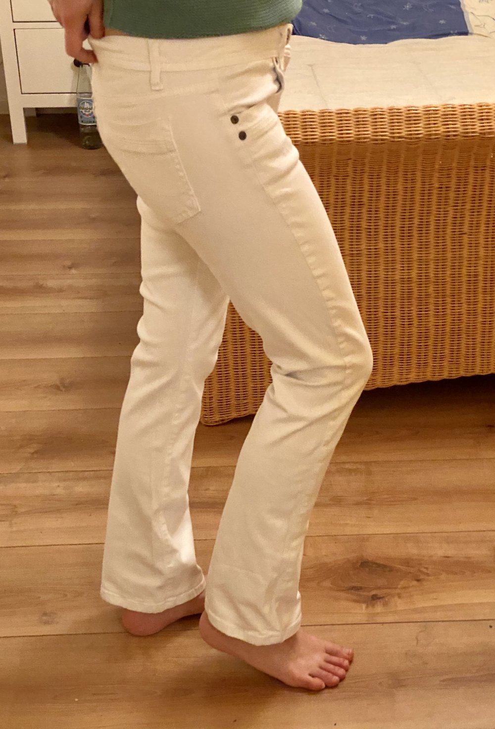 Schöne weiße Bootcut und Low Rise Jeans