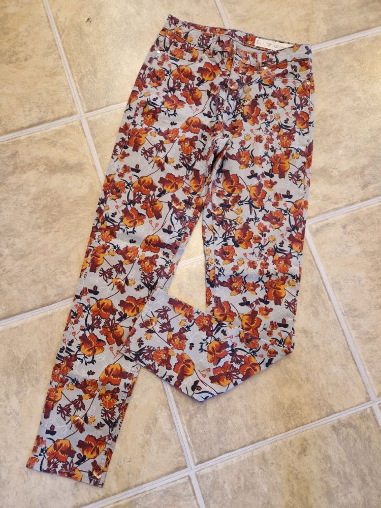 Stylische Hose, Jeans mit Blumendruck. Größe 38. Baumwolle.