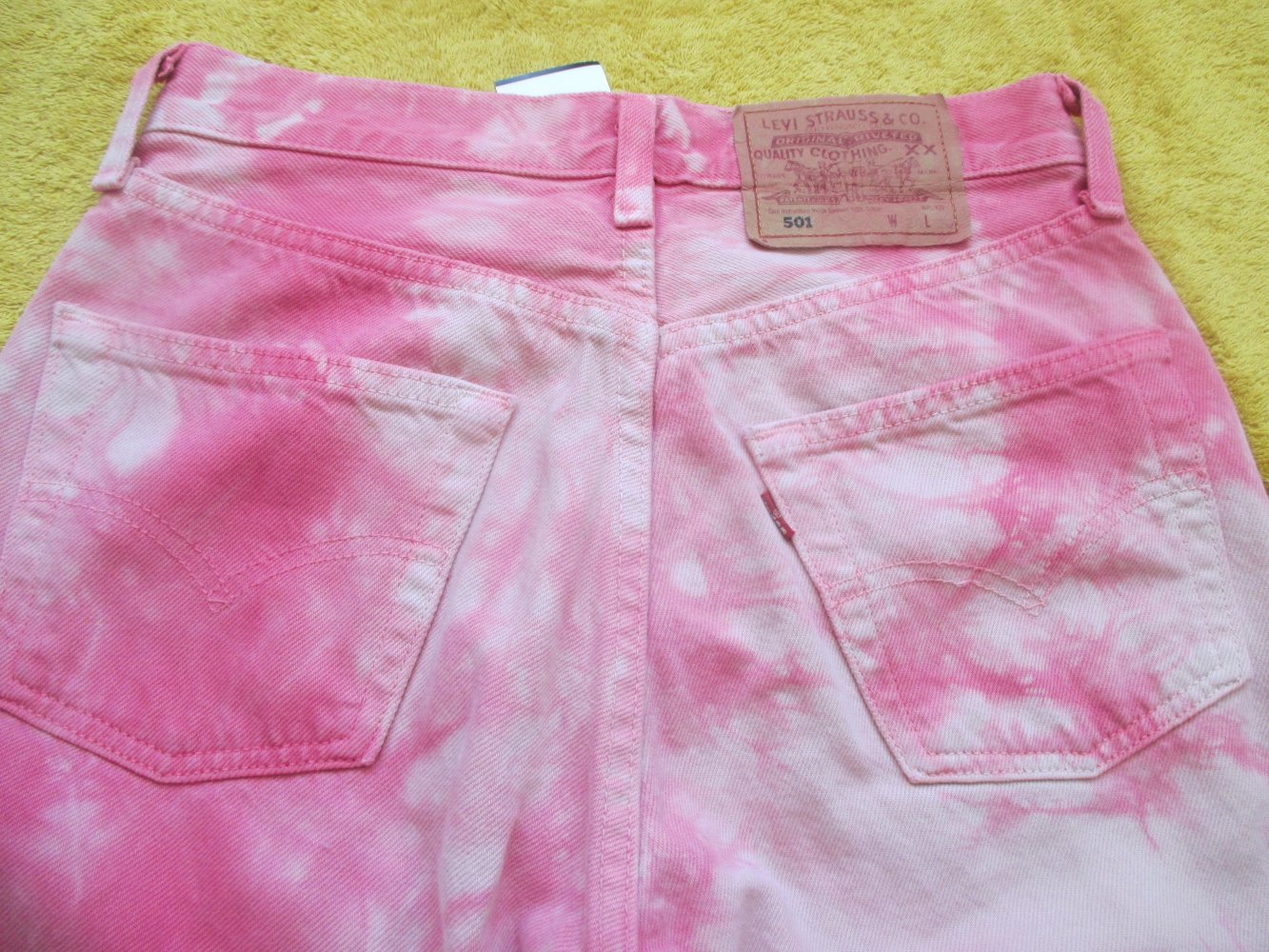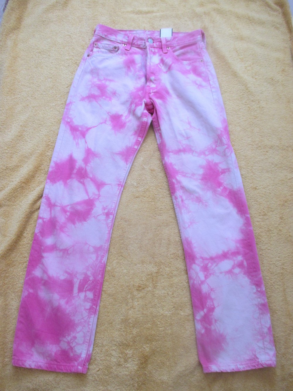 NEU mit ETIKETT * Original 1990er VINTAGE * Coachella * Festival * Batik * Jeans- Hose "Levi's® 501" Gr. W 28 L 30 * 34- 36/ XS- S * Barbie- pink * weiß *