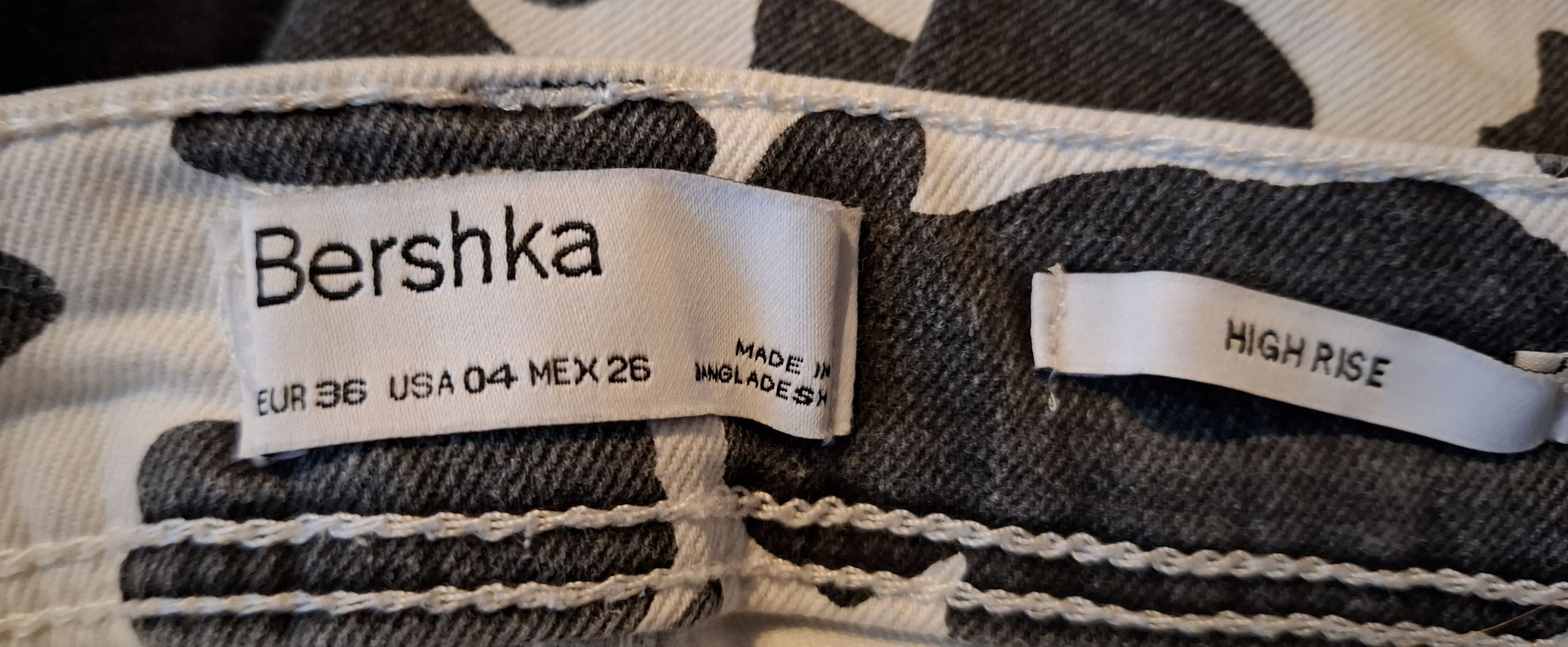 Die Stretchjeans mit schwarz-weißem Kuhfleckenmuster von Bershka ist sehr gut erhalten.
