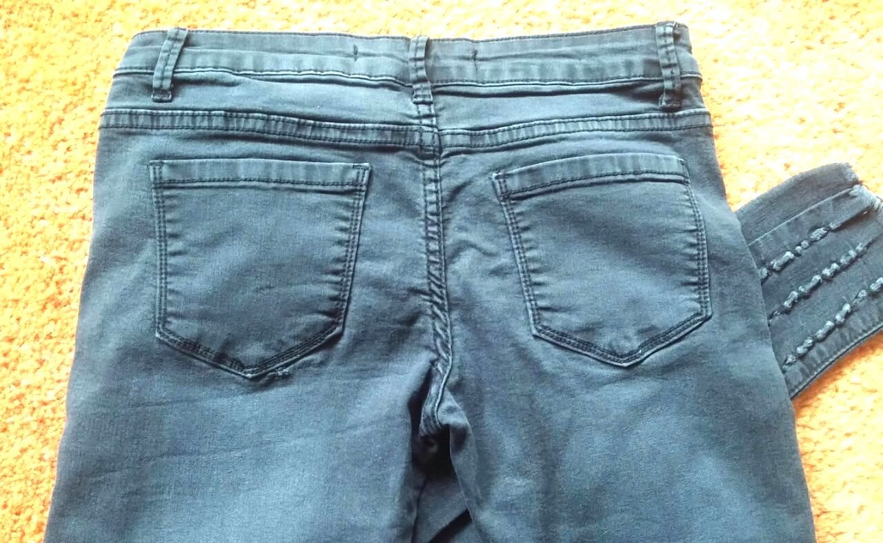 – Schnitt: Schmale Beine, 7/8-Länge, unten leicht ausgefranst