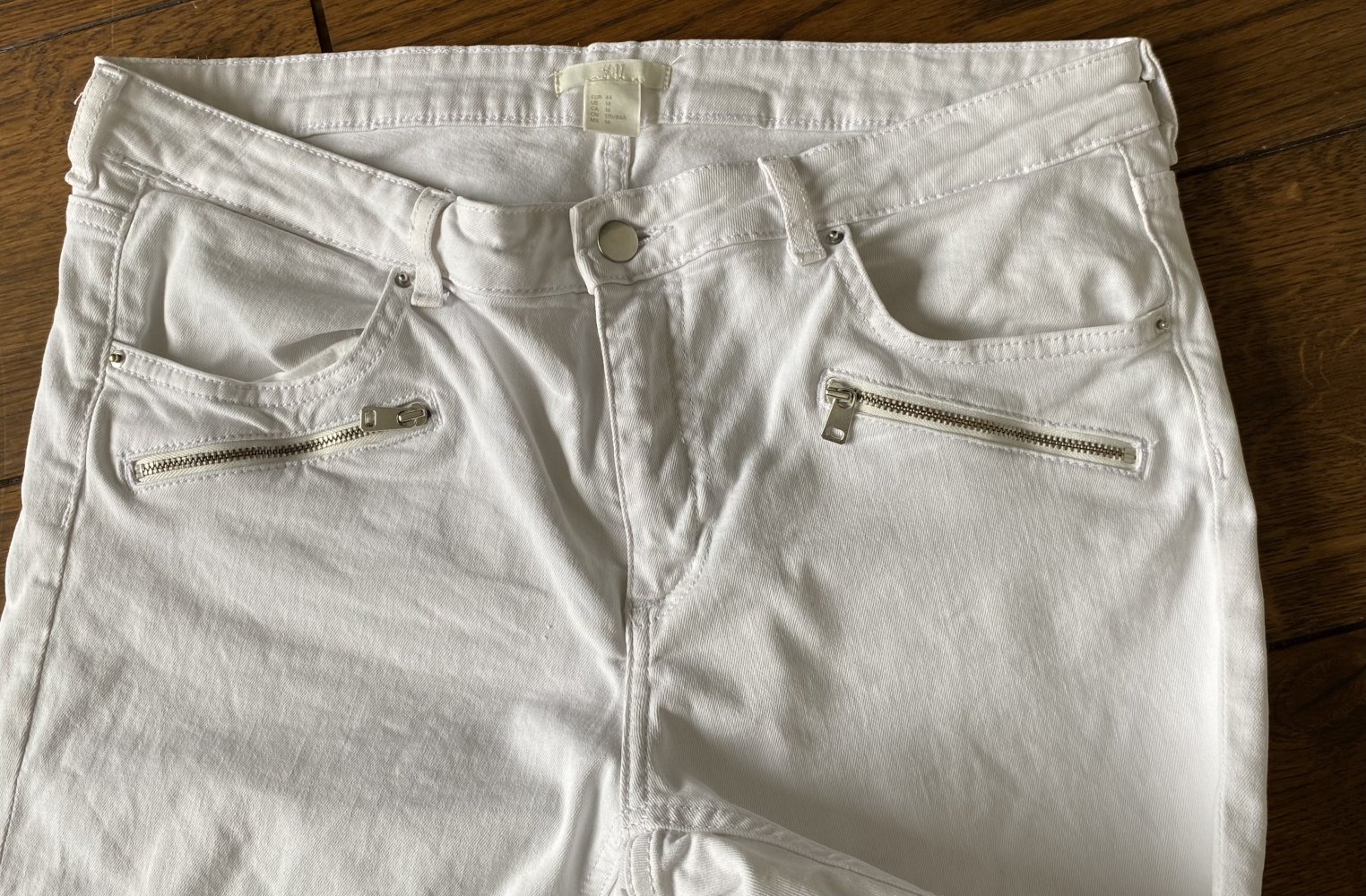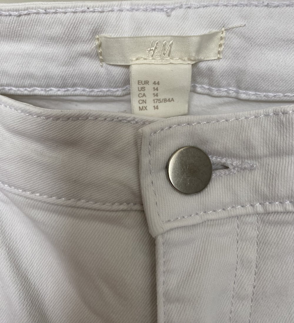 H&M, Jeans, weiß, Stretch, Bikerstyle, Reißverschlüsse, Gr. 44