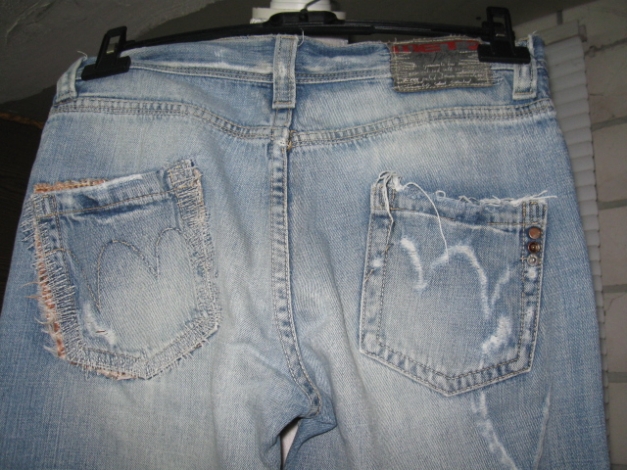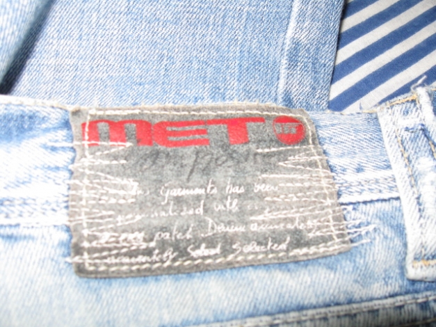 Diese Met Jeans besitzt Löcher und Risse,einen geraden Schnitt,an den Beinenden stark ausgefranst,einfach die Bilder ansehen.Sie besitzt die Inchgr.32/34.Hier noch einige Maßangaben: