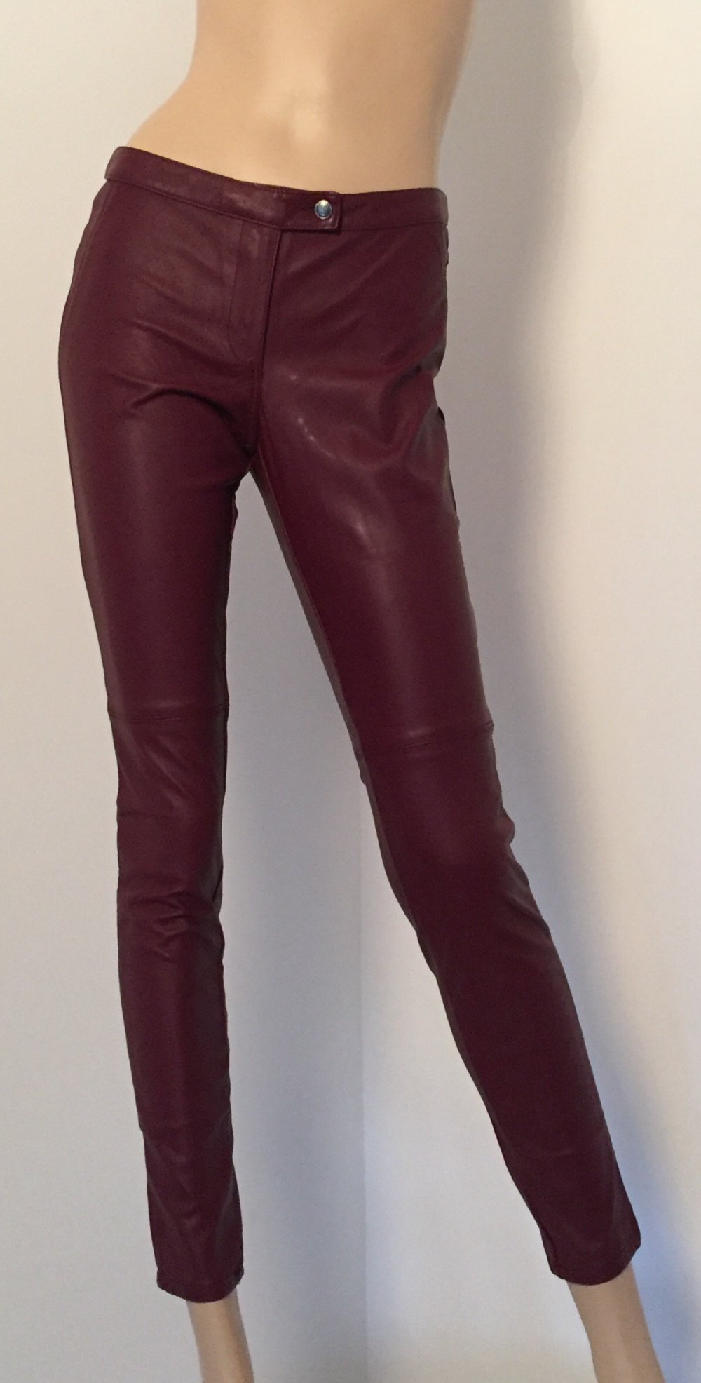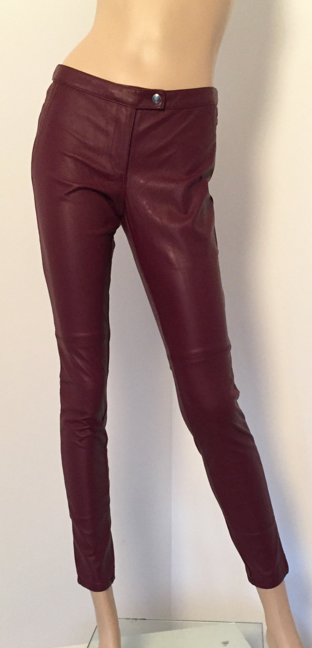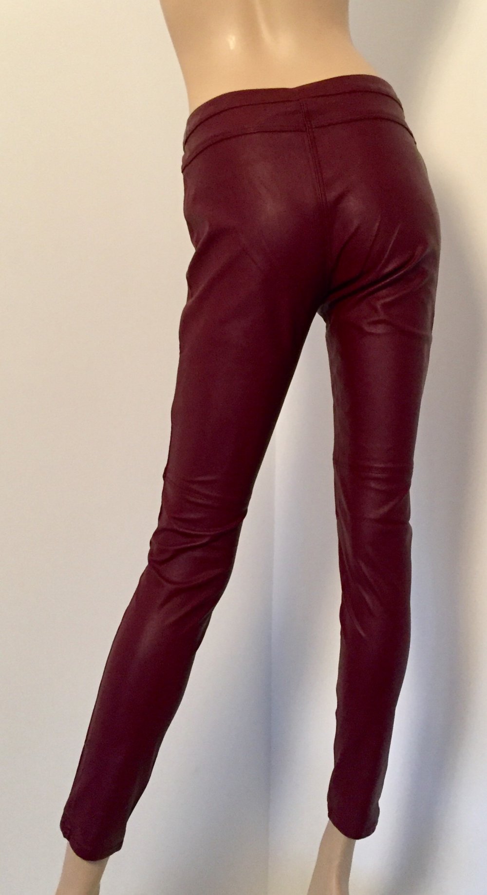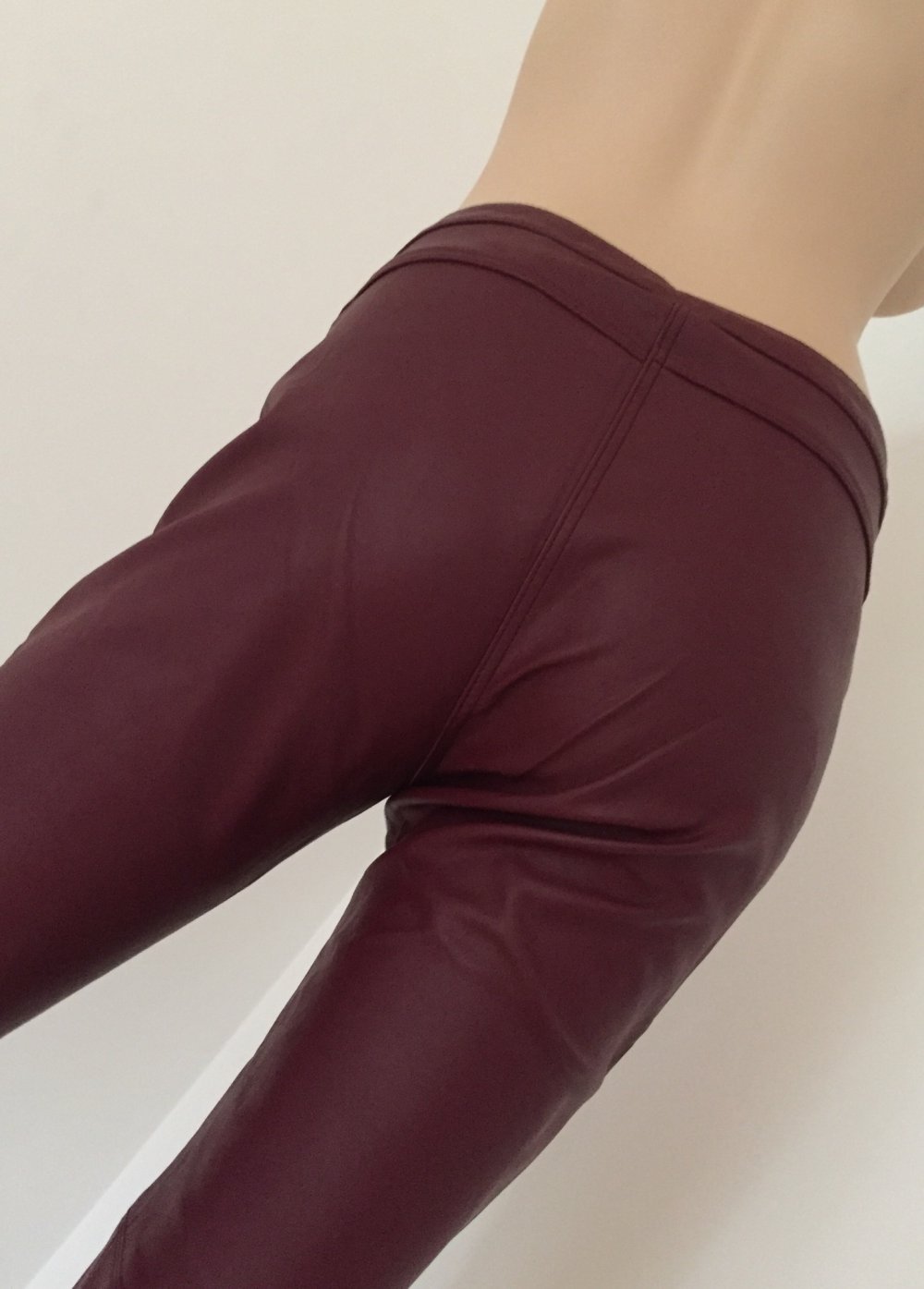 Bordeaux-rote Lederhose (Kunstleder) im Biker Look aus der "Lana del Rey Kollektion" von H&M in Größe 38.