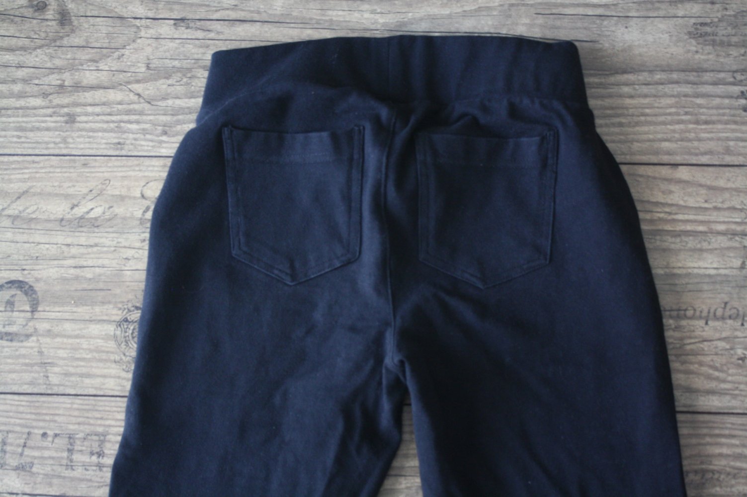 vorn angedeuteter Reissverschluss u Taschen, hinten echte Taschen beidseitig.