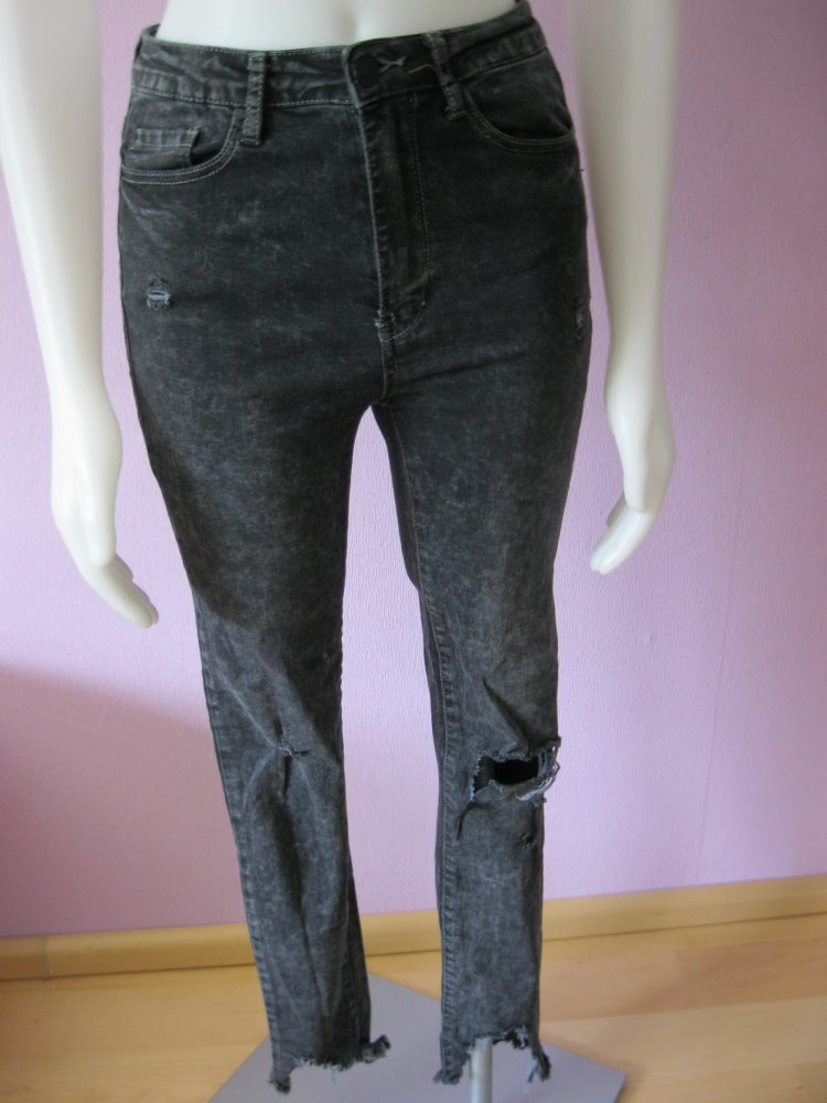 Skinny Jeans # Tally Weijl # Rana High Waist Skinny # ripped Jeans # Grau-Schwarz # 36