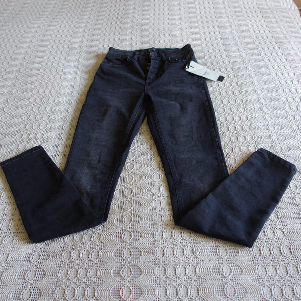 NEU, Jeans, Gr. S/30, High-Waist-Skinny, Black Denim, Only, 92 % BW, 6 % Polyester, 2 % Elasthan, Bundbreite ca. 30 cm ungedehnt, Innenbeinlänge ca. 73 cm, 11 cm Saumbreite, Seitengesamtlänge ca. 99 cm, 35,00 Euro,