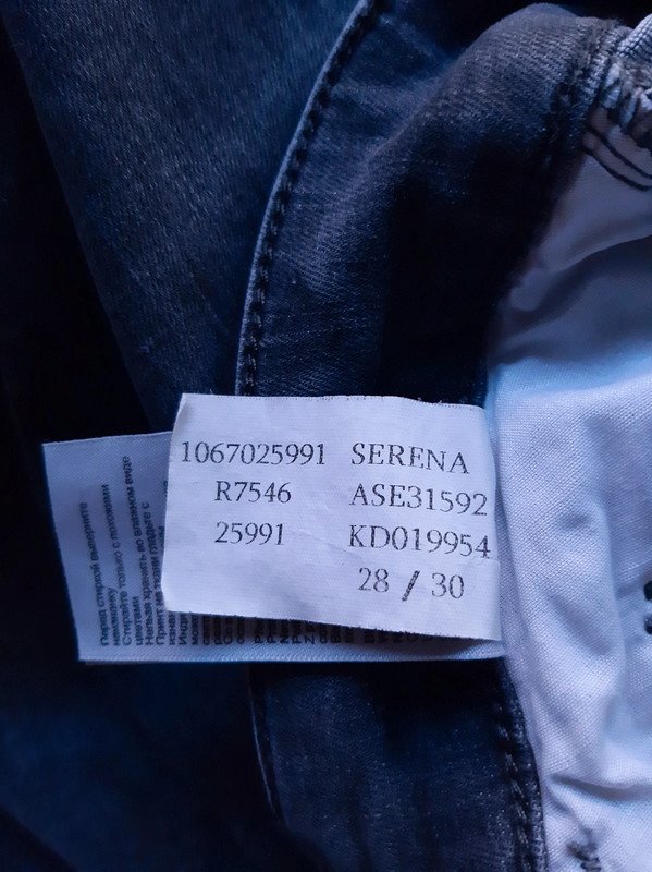 Guter, gebrauchter Zustand mit Gebrauchsspuren: der Stoff ist an einigen Stellen leicht wellig, v.a. vorne im Schritt und am Po; außerdem geht unter der rechen Hosentasche vorne eine Naht auf, ansonsten ohne Mängel (alle weiteren "Abnutzungsspuren" gehören zum gewollten Used-Look und waren bereits beim Kauf vorhanden!)