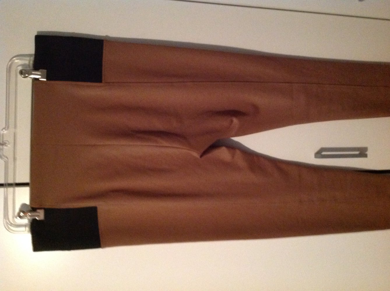 Stretchhose in camel mit seitlichen schwarzen einsätzen Stretchhose in camel mit seitlichen schwarzen einsätzen