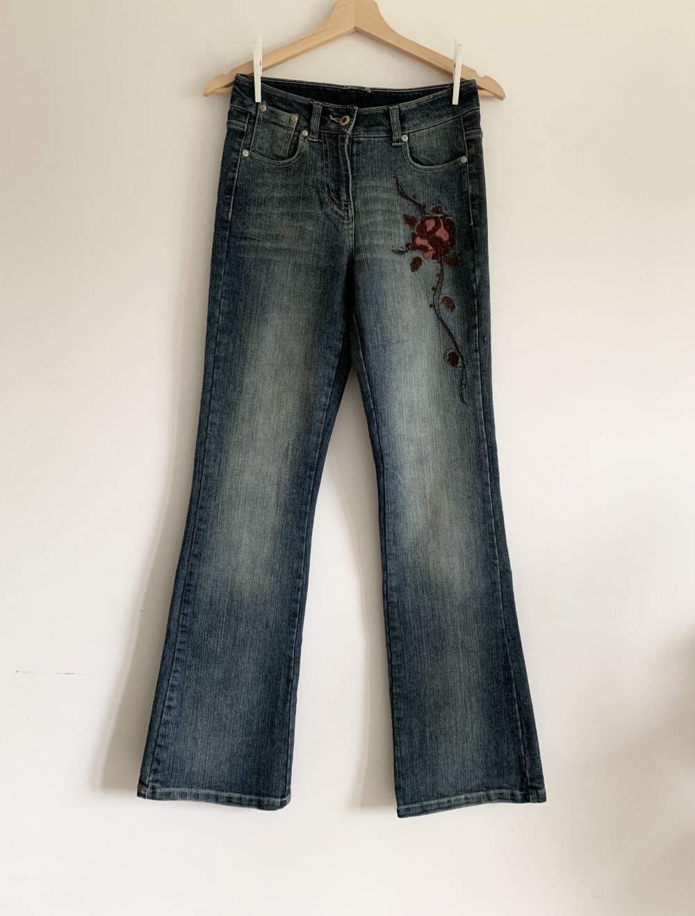 angesagte blaue authentic Y2K 2000 vintage Jeans Schlaghose mit Rose