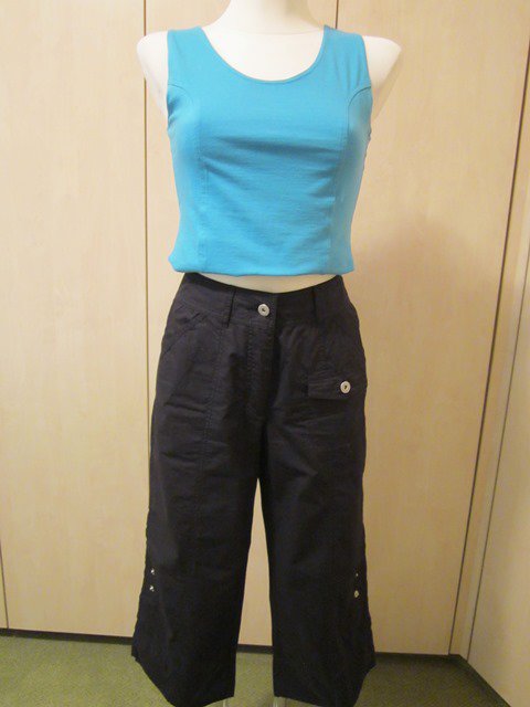 Schwarze 3/4-Freizeithose/Funktionshose aus sehr angenehmem, sehr leichtem Baumwoll-Material.
