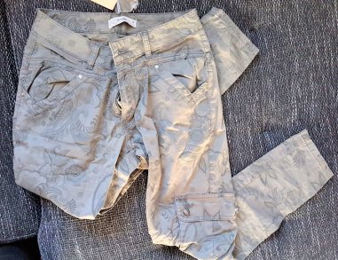 Tredy Hose khaki mit floralem Druck NEU