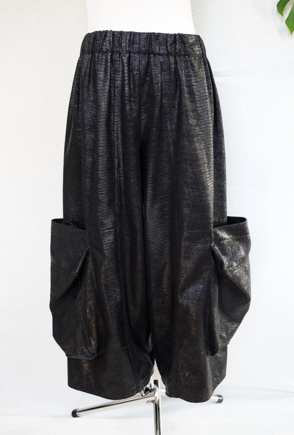 Hosenrock aus schwarzen Velour mit glänzenden Snakeprint.