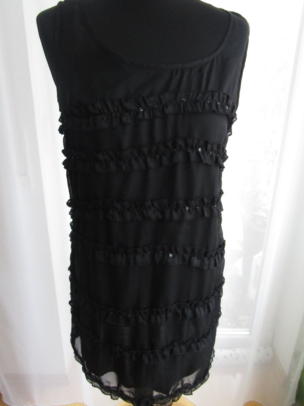 Schönes Kleid gerade richtig jetzt für Weihnachten oder Silvester, kann als Kleid oder als Tunika zu Leggings getragen werden,mit Innenfutter, sehr gute Qualität, romantisch mit Rüschchen und Pailetten, auf der linken Seite befindet sich ein Reißverschluß, Gr. L, entspricht so Gr. 38/40