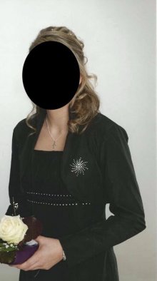 Das Bolero wurde speziell für mich auf der linken Brust mit Swarovskisteinapplikationen verziert.