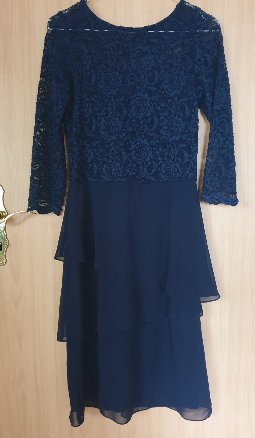 Dunkelblaues Spitzenkleid, neu mit Etikett