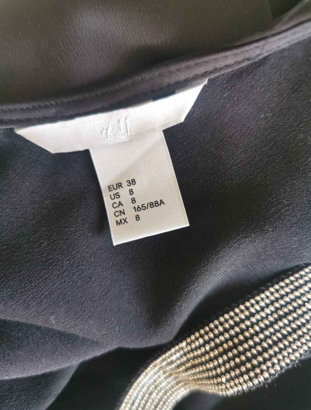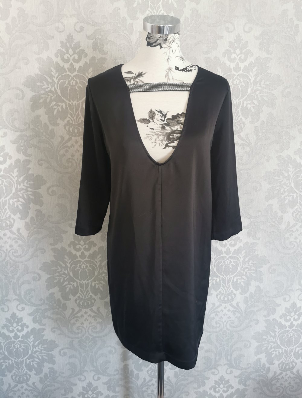 H&M Kleid Gr. 38 Satin schwarz mit Cut Out am Ausschnitt Perlen Top Zustand